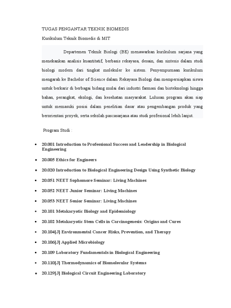 mengarah ke Bachelor of Science dalam Rekayasa Biologi dan mempersiapkan siswa