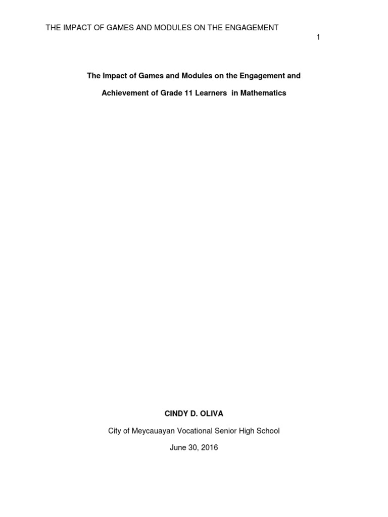 I have the honor to submit a research proposal entitled “The Impact of Games and