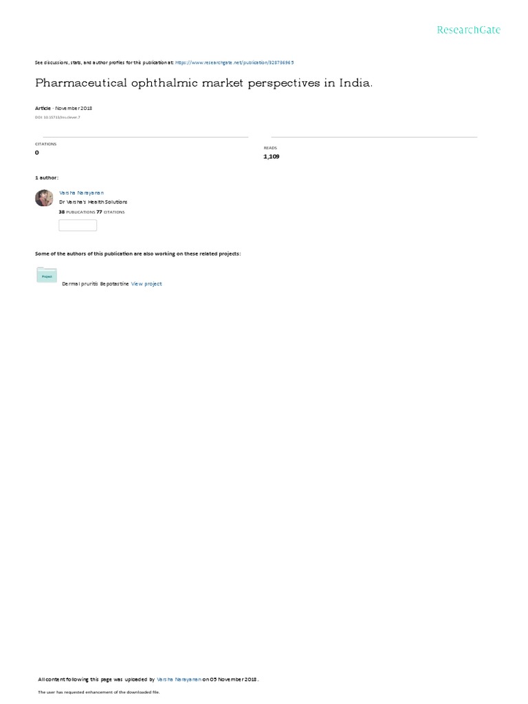 Pharmaceutical Ophthalmic Market Perspectives in India.: November 2018