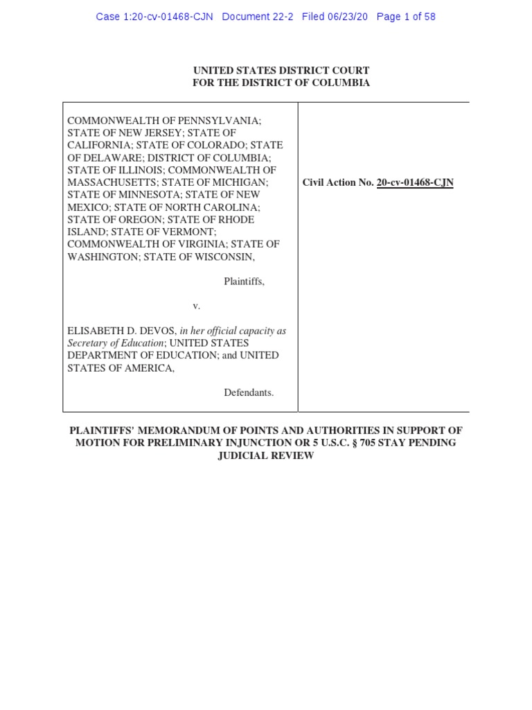 MASSACHUSETTS; STATE OF MICHIGAN; Civil Action No. 20-cv-01468-CJN