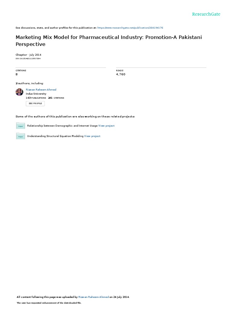 Marketing Mix Model For Pharmaceutical Industry: Promotion-A Pakistani Perspective