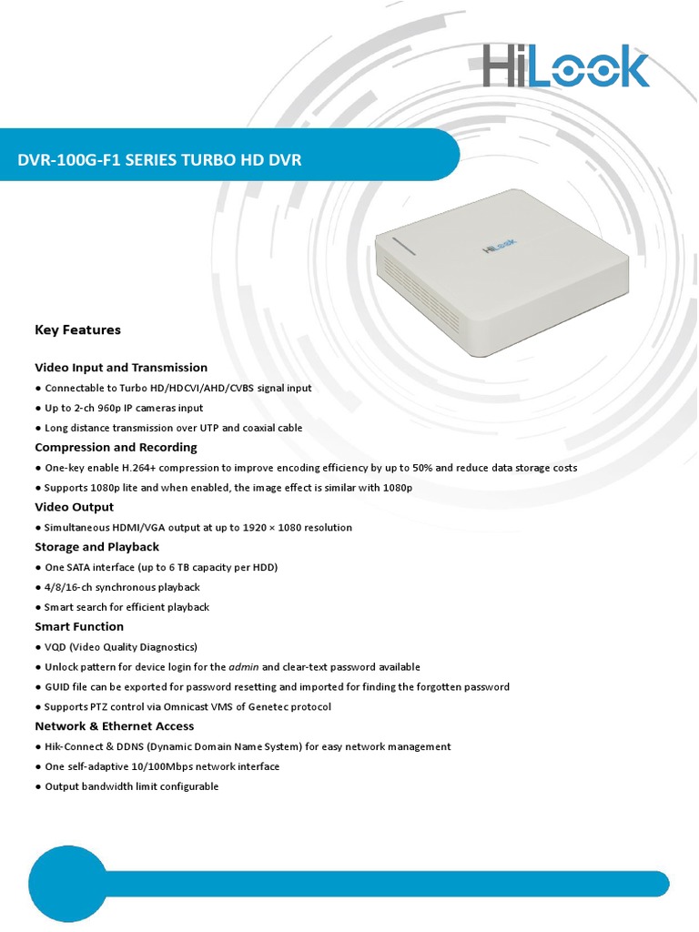 Dvr-100G-F1 Series Turbo HD DVR: Key Features