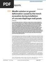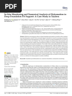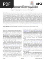 This document discusses a study analyzing the deformation of existing subway tunnels affected by the excavation of a nearby foundation pit. The study used finite element analysis software to simulate the excavation process and optimize the foundation pit design to ensure stability and tunnel safety. Key factors influencing tunnel deformation from foundation pit excavation were identified as the distance between structures, amount of earthwork removed at once, and soil conditions. The results provide guidance for designing and assessing safety on similar projects involving underground construction near subway tunnels.