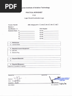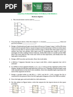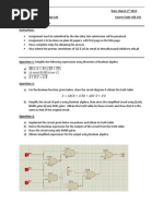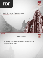 This lab involves combining logic gates to demonstrate equivalent circuits and Boolean simplification. Students will complete four tasks: 1) Build circuits using NAND gates and determine the logic functions from truth tables. 2) Design a circuit with three inputs to output 1 if SW0=1 or if two or more inputs are 1, simplify to only use NAND gates. 3) Build a circuit using NOT, AND2, NOR2 and AND3 gates and fill in its truth table. 4) Simplify the previous circuit and test that it matches the truth table. Pin locations for inputs and outputs are also provided.