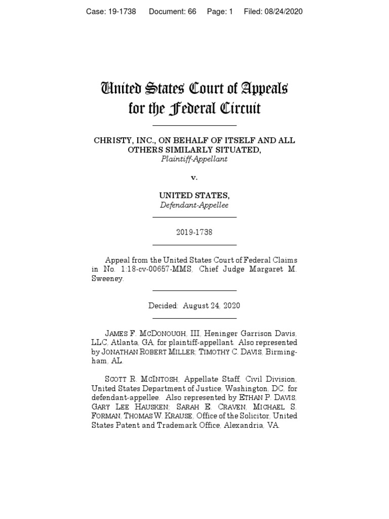 Case: 19-1738 Document: 66 Page: 2 Filed: 08/24/2020