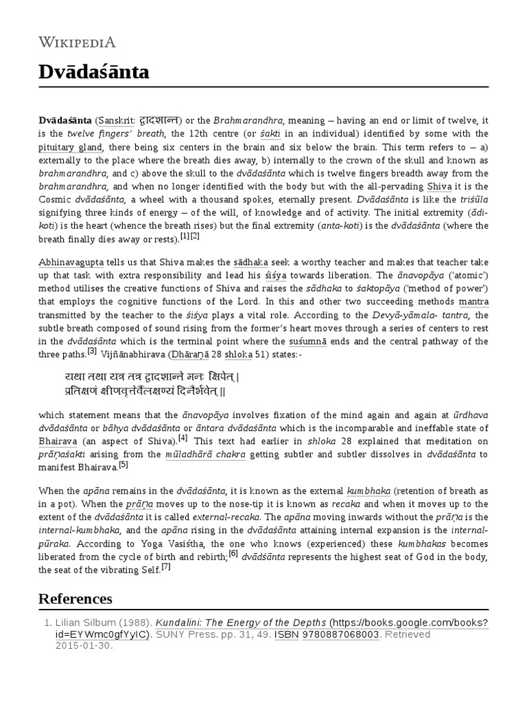 Retrieved from "https://en.wikipedia.org/w/index.php?title=Dvādaśānta&oldid=927006515"