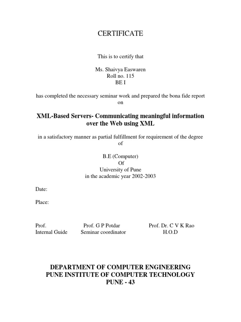 has completed the necessary seminar work and prepared the bona fide report