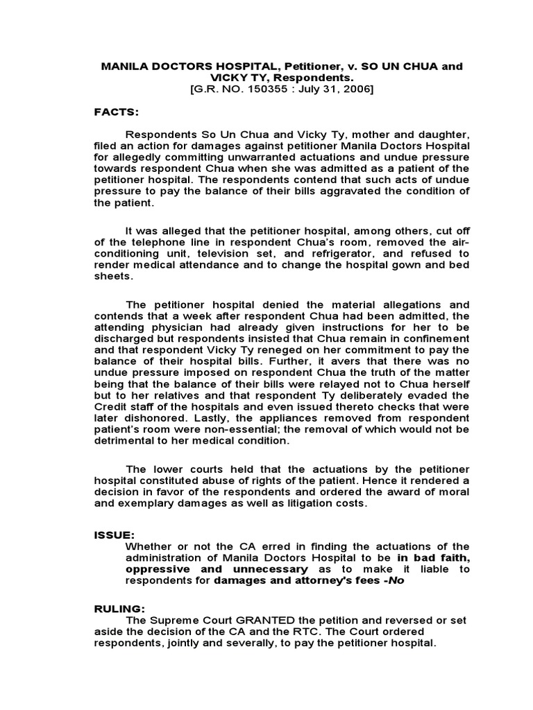 filed an action for damages against petitioner Manila Doctors Hospital