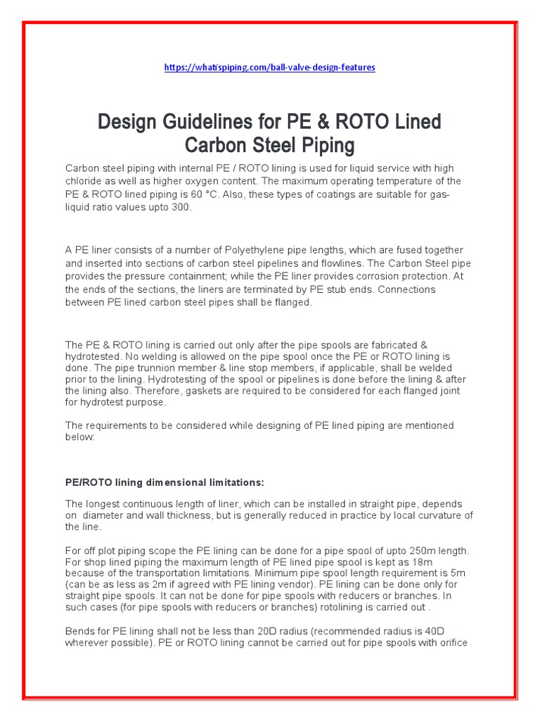 Design Guidelines for ROTO Lined Piping:
