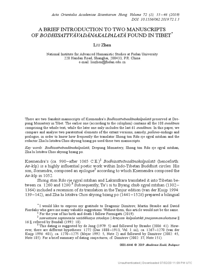 AcO A Brief Introduction To Two Manuscripts of Bodhisattvāvadānakalpalatā Found in Tibet