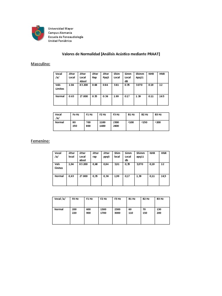 Valores de Normalidad [Análisis Acústico mediante PRAAT]