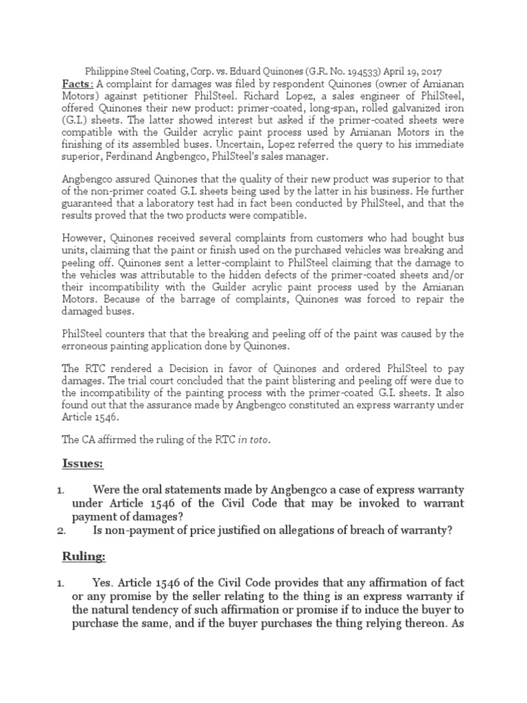peeling off. Quinones sent a letter-complaint to PhilSteel claiming that the damage to
