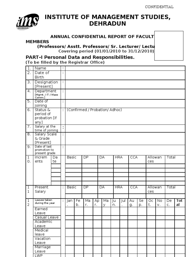 ANNUAL CONFIDENTIAL REPORT OF FACULTY