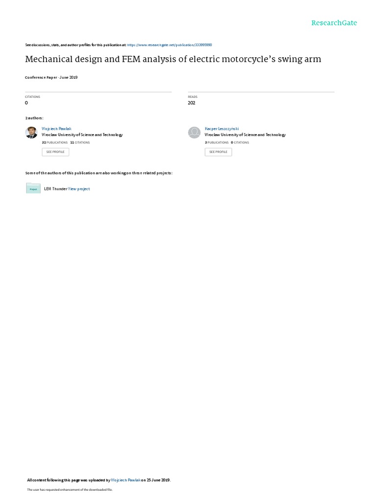 Mechanical design and FEM analysis of electric motorcycle’s swing arm