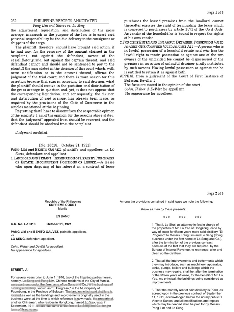 Pang Lim and Galvez vs. Lo Seng thereafter exercise the right of terminating the lease which