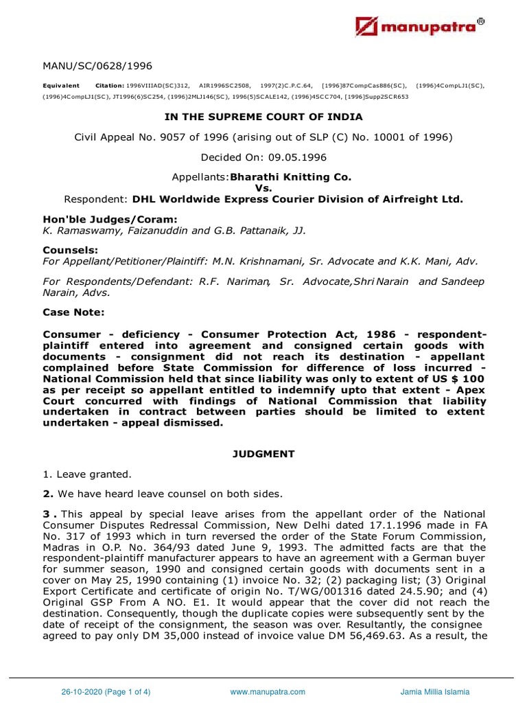26-10-2020 (Page 1 of 4)                            www.manupatra.com                                     Jamia Millia Islamia