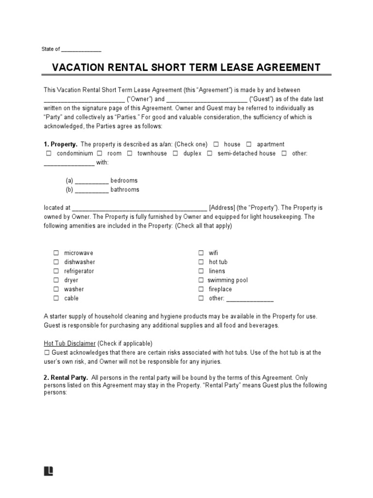 Vacation Rental Short Term Lease Agreement Checklist