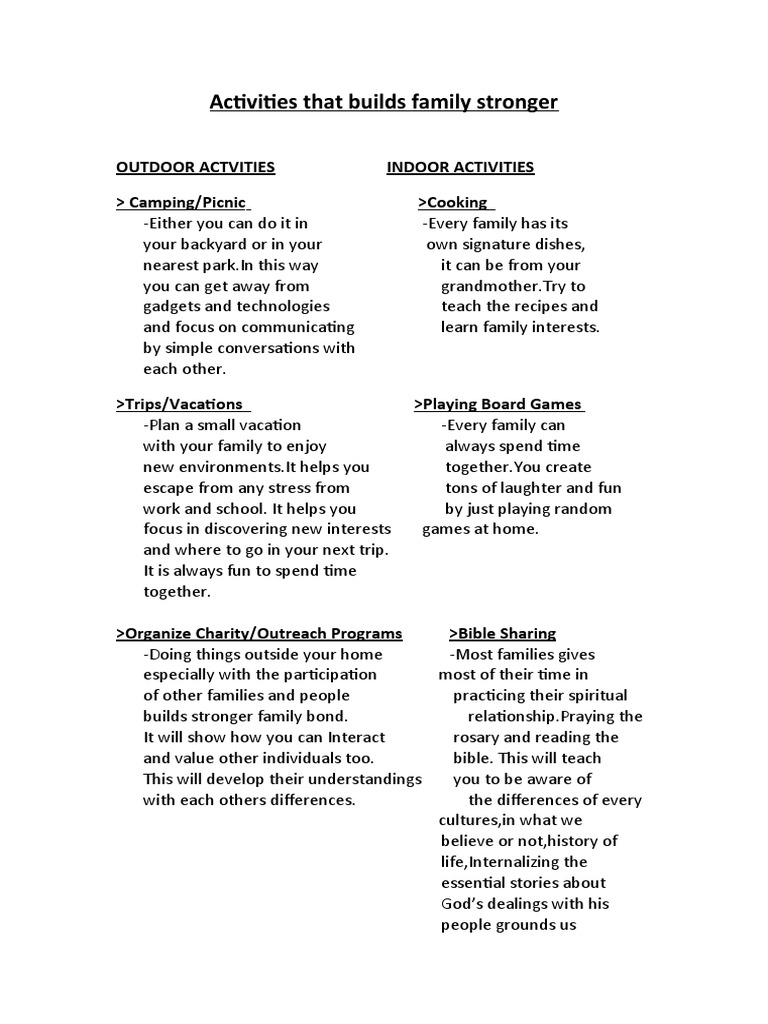 Activities that builds family stronger
