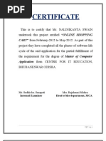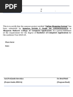 This certificate confirms that Charan Singh R completed a project called "Online Book Shop" in partial fulfillment of the requirements for a BCA degree in Web Science for the year 2019-2020. The certificate is signed by the guide, examiner, and head of the BCA in Web Science department, with a registration number of RBC18009.