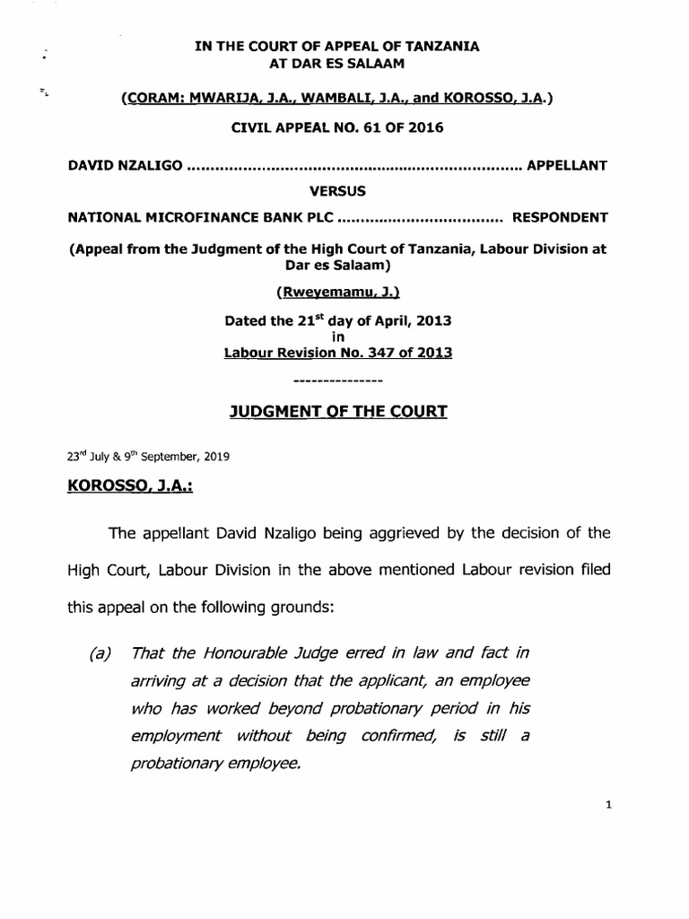 High Court Labour Division, Dar es Salaam which ended with a Ruling in