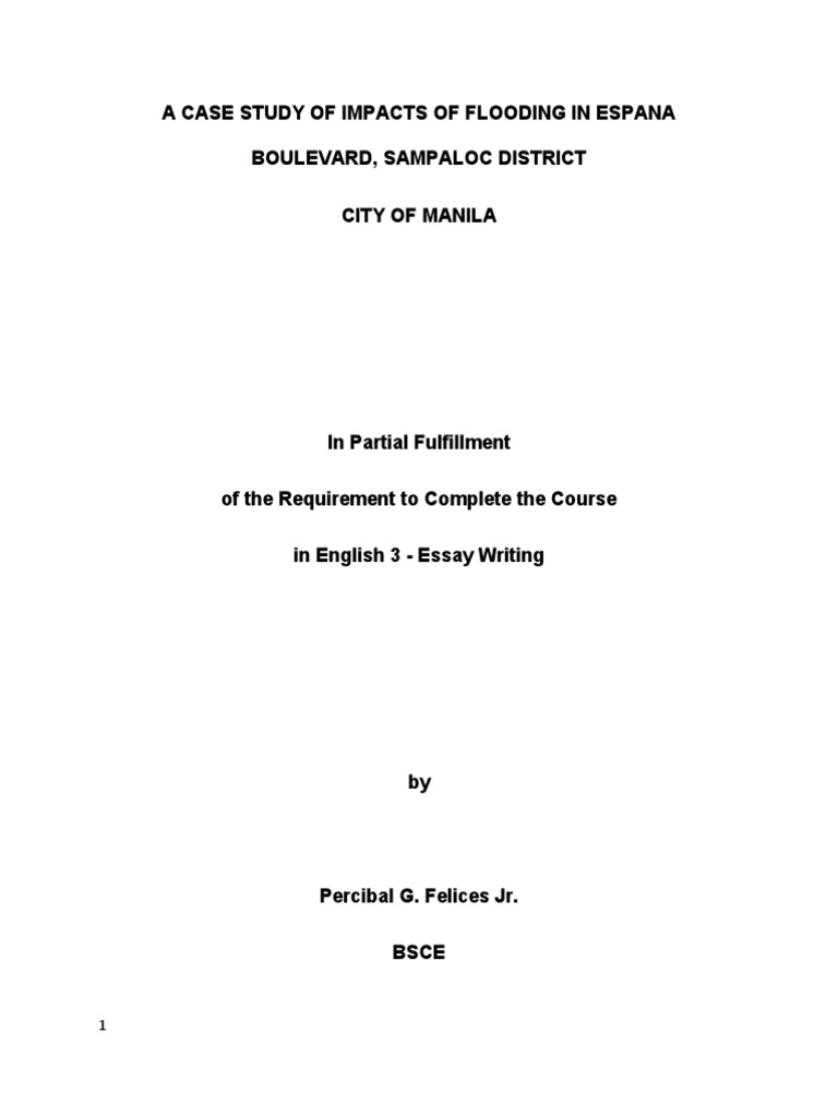 Project Title: A Case Study of Flooding in Sampaloc District, City of Manila