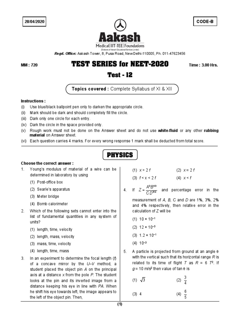 Regd. Office: Aakash Tower, 8, Pusa Road, New Delhi-110005, Ph. 011-47623456