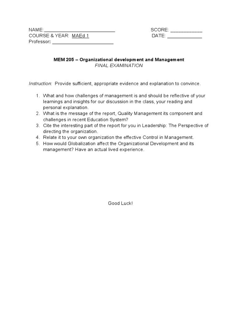 COURSE & YEAR: MAEd 1 DATE: _____________