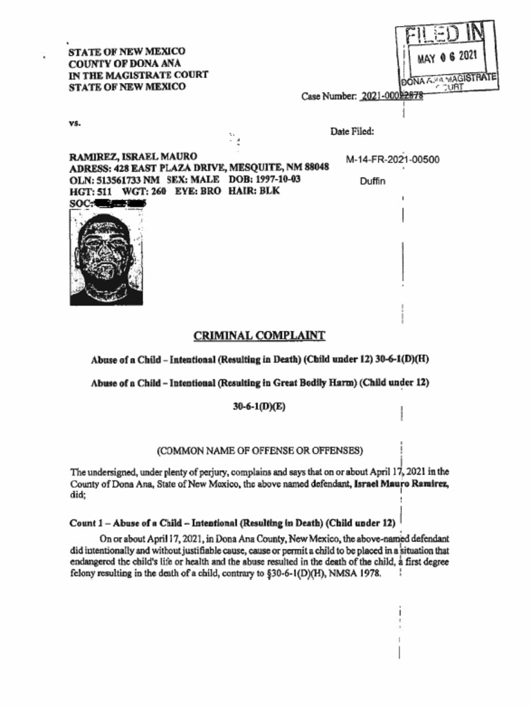 County of Dona Ana, State of New Moxico, the above named defendant, Israel Mauro Ramirez,