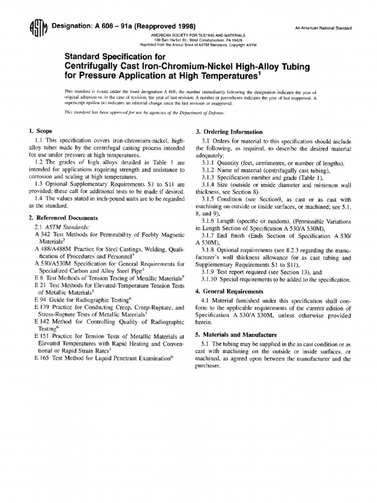 0 ratings0% found this document useful (0 votes) 129 views5 pagesASTM-A608 Centrifugally Cast Iron-Chromium-Nickel High-Alloy Tubing