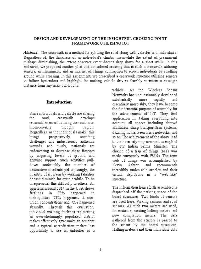 Abstract : The crosswalk is a method for splitting the road along with vehicles and individuals.