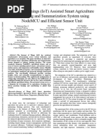 This document proposes an IoT-based smart agriculture monitoring system using sensors like temperature, moisture, and light sensors to collect field data and send it wirelessly to farmers, as traditional agriculture methods are insufficient to ensure food security for the growing population and IoT can help increase efficiency and productivity by monitoring important factors remotely. The proposed system uses sensors connected to a NodeMCU microcontroller to measure field conditions and send the sensor data via WiFi to authorized users.
