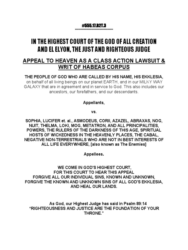 WE COME BEFORE GOD’s COURT WITH THE FOLLOWING PETITION OF