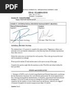 The document is an exam for an International Business Management course containing 4 questions. It instructs students to provide their student ID and name, follow word limits for answers, and submit within 7 days to avoid plagiarism. The questions address: 1) location economies of the US attractive to foreign investors, 2) strategy for a Vietnamese silk company expanding internationally, 3) make-or-buy decision for a British car company outsourcing exhaust systems, and 4) distribution channel length based on retail system fragmentation and appropriate communication strategies for a German forklift company in Germany and Vietnam markets.