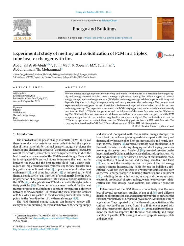 exchangers [2], and using heat pipes [3]) or improving the PCM as thermal energy storage in building structures and equipment