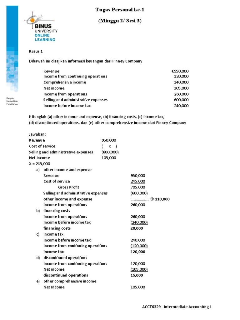 (d) discontinued operations, dan (e) other comprehensive income dari Finney Company