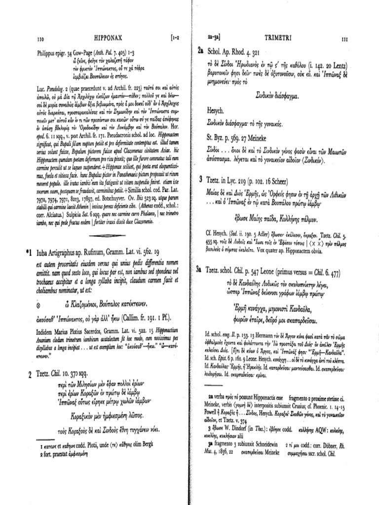Hipponactem etiam ostendit Heliodoras iambos et choliambos confuse pro-