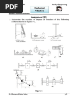 1. The document provides 7 figures of mechanical systems and asks the reader to find the equivalent mass or inertia of each system. It includes systems with links, gears, plates, and reciprocating parts. 2. The equivalent masses are needed to analyze the vibration and damping characteristics of the mechanical assemblies under different loading and motion conditions. 3. Finding the equivalent mass involves determining the combined mass and rotational inertia of connected rigid bodies within each system, assuming their motion is constrained by joints and connections like links, gears, and shafts.