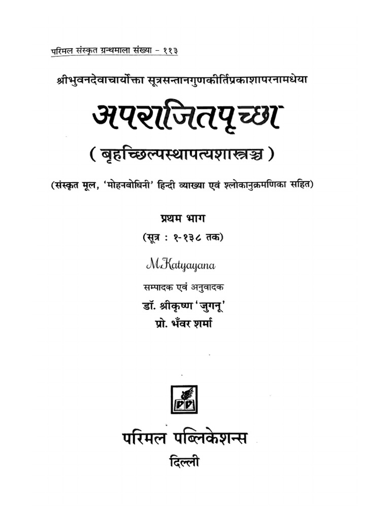 अपराजितपृच्छा Aparajitaprccha - shrikrishna Jugnu' 1-2