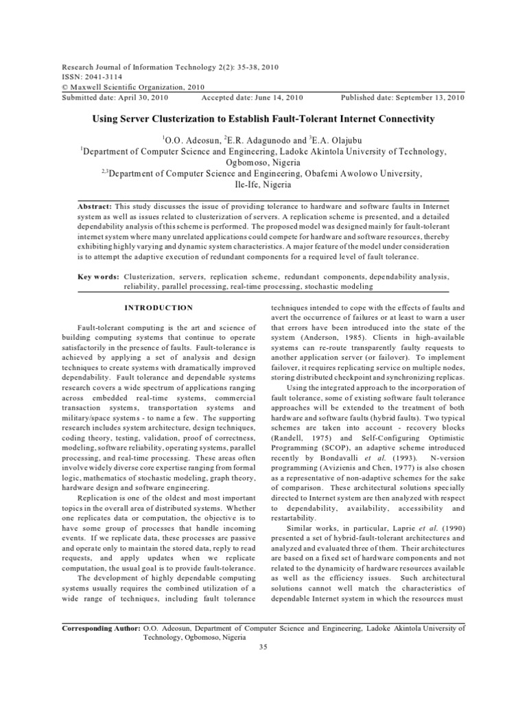 Res. J. Inform. Technol., 2(2): 35-38, 2010