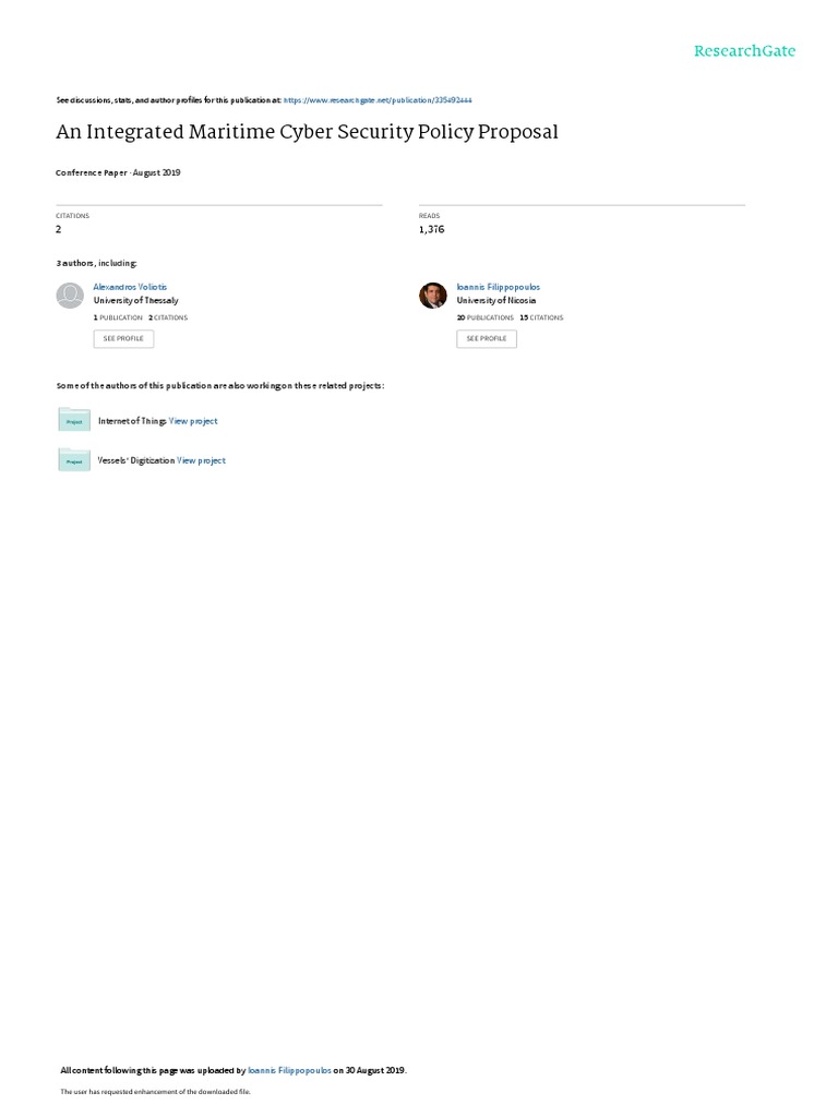 Isbell, Code of Practice - Cyber security for Ships. [46] I Filippopoulos et all, (2017), Collecting and using vessel's live data from
