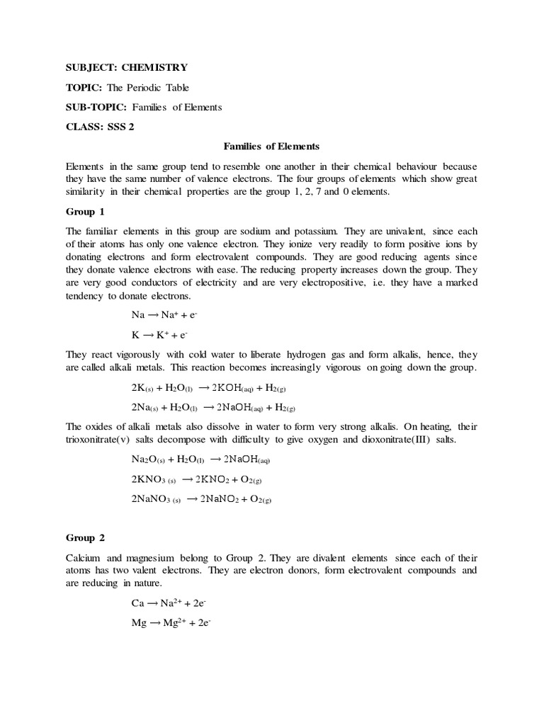 Elements in the same group tend to resemble one another in their chemical behaviour because