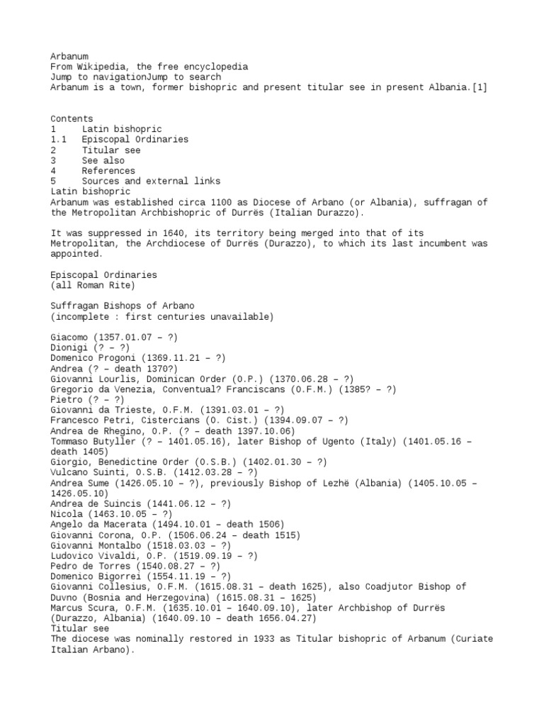 "Arbanum", Annuario pontificio, Città del Vaticano: 851, 2008, OCLC 2160642,