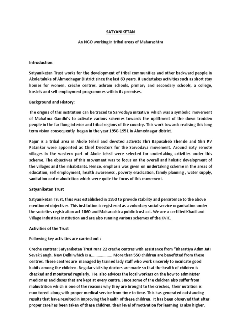 Satyaniketan Trust works for the development of tribal communities and other backward people in