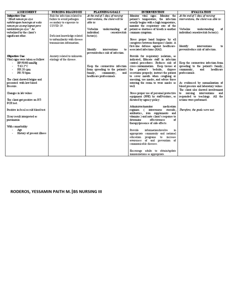 “Hindi naman po siya failure to avoid pathogen interventions, the client will be patient’s temperature; the infection interventions, the client was able to: