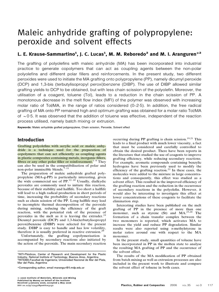 Krause-Sammartino et al. Maleic anhydride grafting of polypropylene