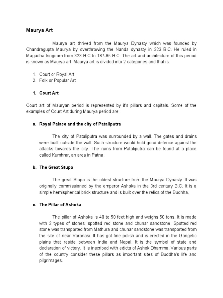 is known as Maurya art. Maurya art is divided into 2 categories and that is: