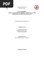 approval of his bill, which intends to regulate the production and sale of medicinal Marijuana in