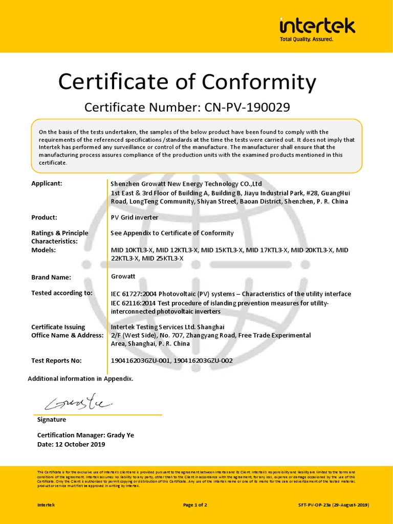 Intertek Page 1 of 2 SFT-PV-OP-23a (29-August-2019)