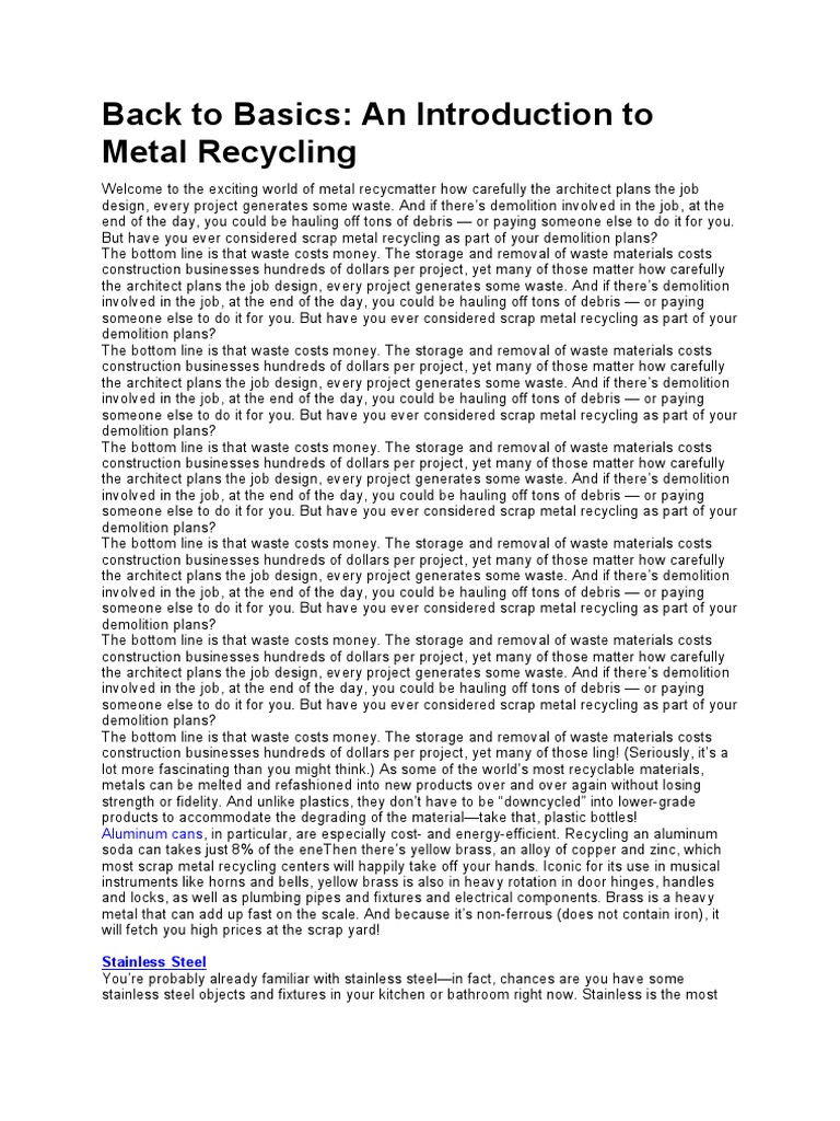 Welcome to the exciting world of metal recycmatter how carefully the architect plans the job