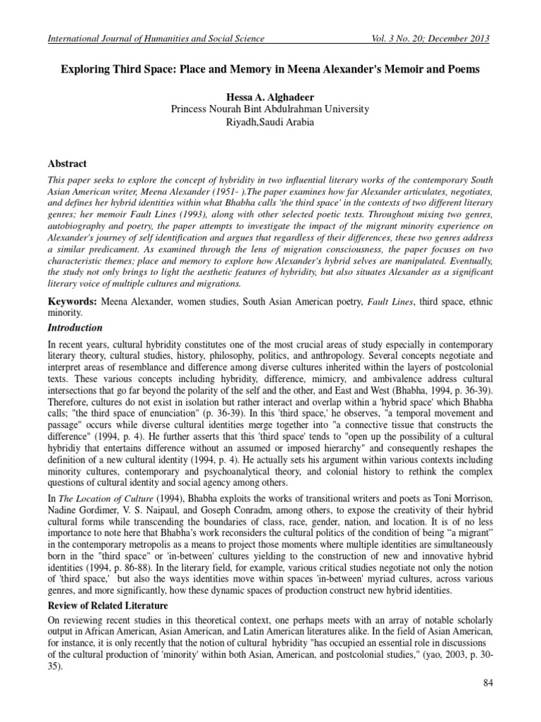 articulate the spaces ‘in-betweenness’ (Bhabha, 1994) in their literary texts, along with race, ethnicity, and gender.